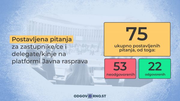 Građani i građanke putem platforme Javna rasprava imaju mogućnost postavljanja pitanja parlamentarcima i parlamentarkama. Tokom treće godine mandata državne zakonodavne vlasti postavljeno je 75 pitanja, dok su parlamentarci/ke odgovorili/e na tek 22. Najaktivniji zastupnik u Predstavničkom domu po broju odgovorenih pitanja je Šemsudin Mehmedović, dok su najaktivniji delegati u Domu naroda Džemal Smajić i Zlatko Miletić.